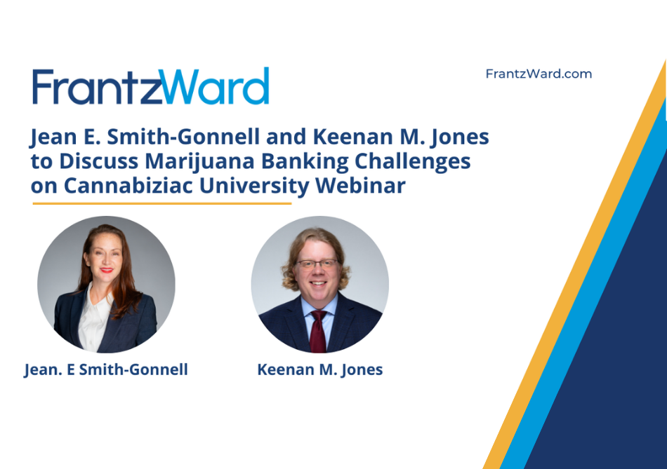 Frantz Ward Partners Jean E. Smith-Gonnell and Keenan M. Jones will share cannabis banking insights in a live webinar as part of the Cannabiziac University…